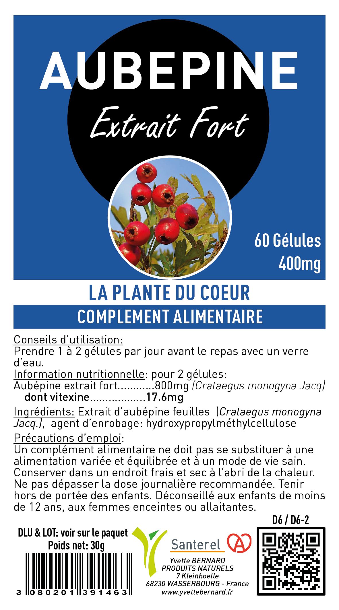 AUBEPINE EXTRAIT FORT 60 GELULES 400MG -SANTEREL