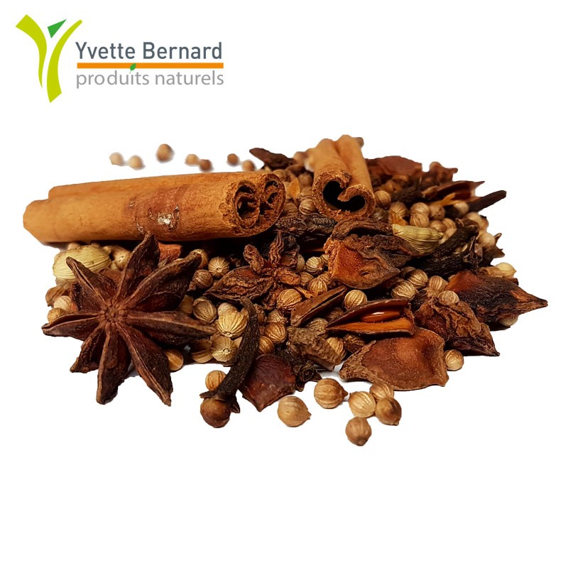 Recette réputée en Alsace. On ne résiste par à vous donner la bonne recette de vin chaud de Brad Wurscht. Comme dirait Brad, justement, l’important est de préparer son vin chaud avec amour et du vin aussi. Plus votre vin sera bon, plus votre vin chaud sera bon. Le reste, de Strasbourg à Mulhouse passe par « la » recette. Ingrédients (4 personnes) 150 centilitres de vin rouge (ou du jus de pomme) 250 grammes de sucre Mettre 1 cuillère à soupe du mélange rase et 2 batons de cannelle. Un citron Deux oranges Versez le vin dans une casserole Faites-le chauffer sans le laisser bouillir . Prélevez le zeste des agrumes et versez le. Ajoutez le sucre et les épices, et rajoutez des dés de vos oranges et de votre citron. Continuez de le faire chauffer à feu doux pendant vingt à vingt-cinq minutes Filtrez avec une passoire Servir dans des mugs ou verres adaptés. Bonne dégustation! Coriandre, cardamome, badiane, clou de girofle, cannelle baton, piment de jamaique. Vendu en paquet de 40gRecette du mélange VIN CHAUD
