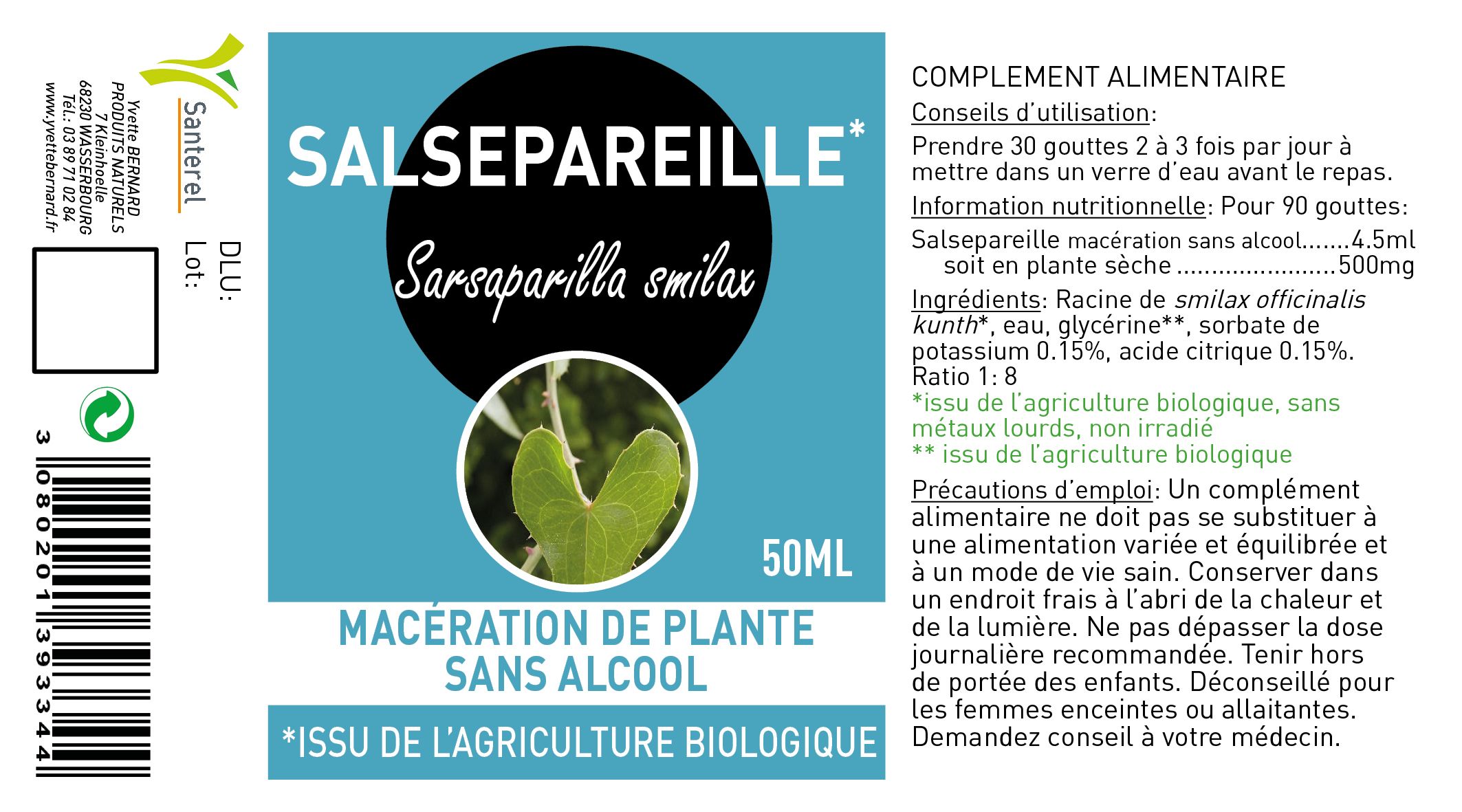SALSEPAREILLE* macération SANS ALCOOL 50ml - * sans pesticide SANTEREL